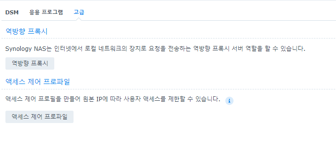 다음으로 제어판 -> 로그인 포털 -> 고급탭에서 '역방향 프록시'로 들어간다